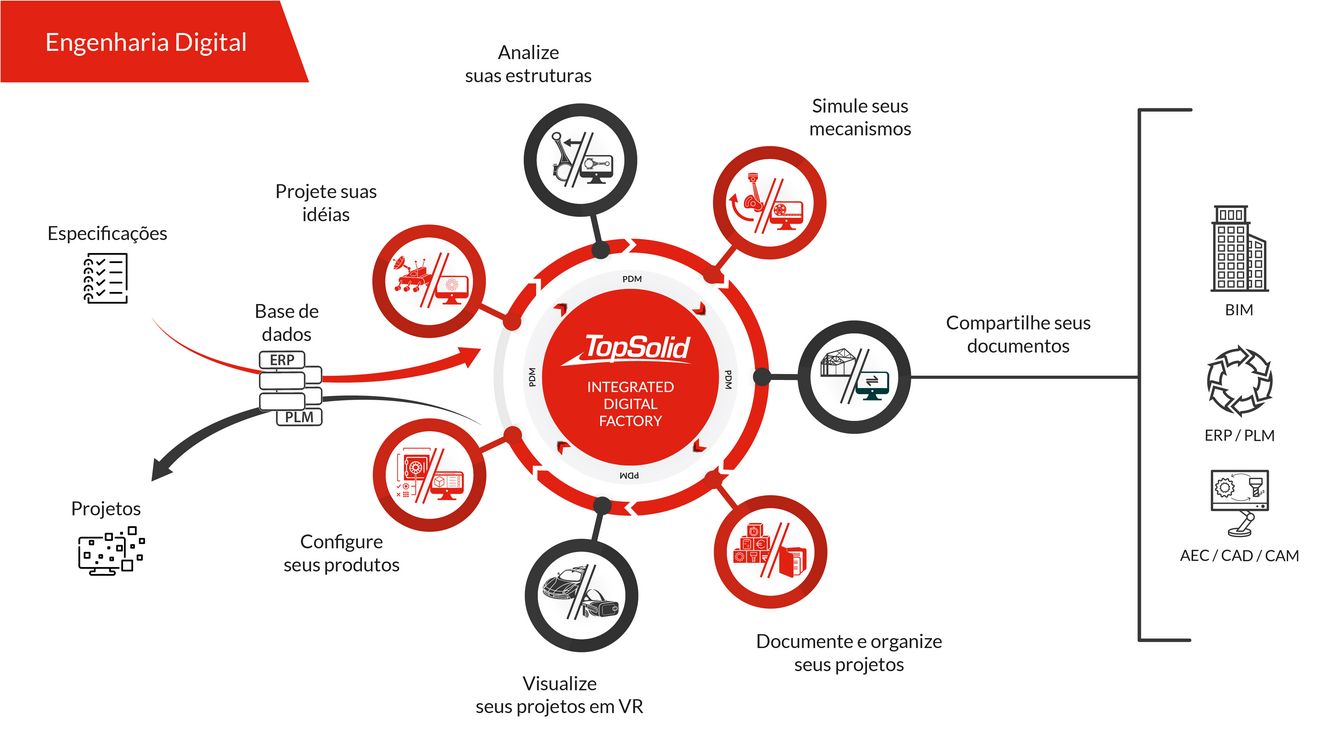 Você é um profissional do setor procurando por uma solução CAD/CAM/ERP? O TopSolid é uma solução única, confiável, completa e produtiva. Sua gama de produtos é uma solução muito poderosa de modelagem, produção e gerenciamento que irá atender suas necessidades de produção, seja qual for seu setor de atividade.