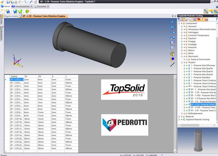 Librerie dei normalizzati Pedrotti per TopSolid'Mold V7