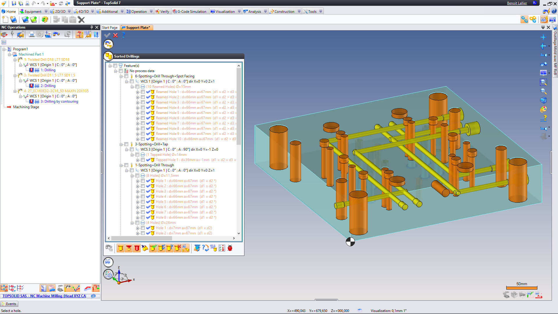 - Analysis: find all the holes that can be machined automatically according to the limitations of the machine to machine them directly.