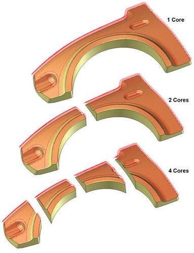 Grâce aux possibilités de calcul parallèle qu'offrent les ordinateurs multi-cœurs, TopSolid'Cam 2010 permet de réduire fortement les temps de calcul (de 50 à 75% en fonction du nombre de cœurs), et ceci, notamment sur les opérations 3 et 5 axes qui réclament énormément de puissance.