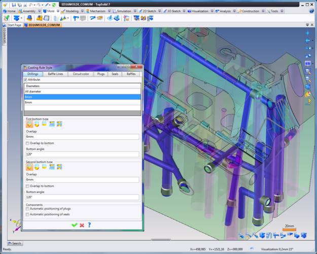 As we all know, one of the most challenging parts of any mold design is the cooling circuit. Part of what makes cooling circuits challenging is the raw variety of approaches. Now in TopSolid’Mold 2017 it is possible for the user to store creation know-how. This storage of knowledge can then be applied to any and all future designs. This both speeds up productivity while increasing profitability of the design.