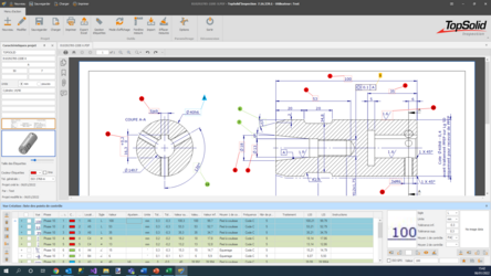 The control point list is created by ballooning the dimensions directly on the drawing of the part. The value of the dimension is retrieved via a character recognition, this allows an automatic supply of tolerances (according to the general tolerance or the fitting), control frequency, location in the drawing, etc.