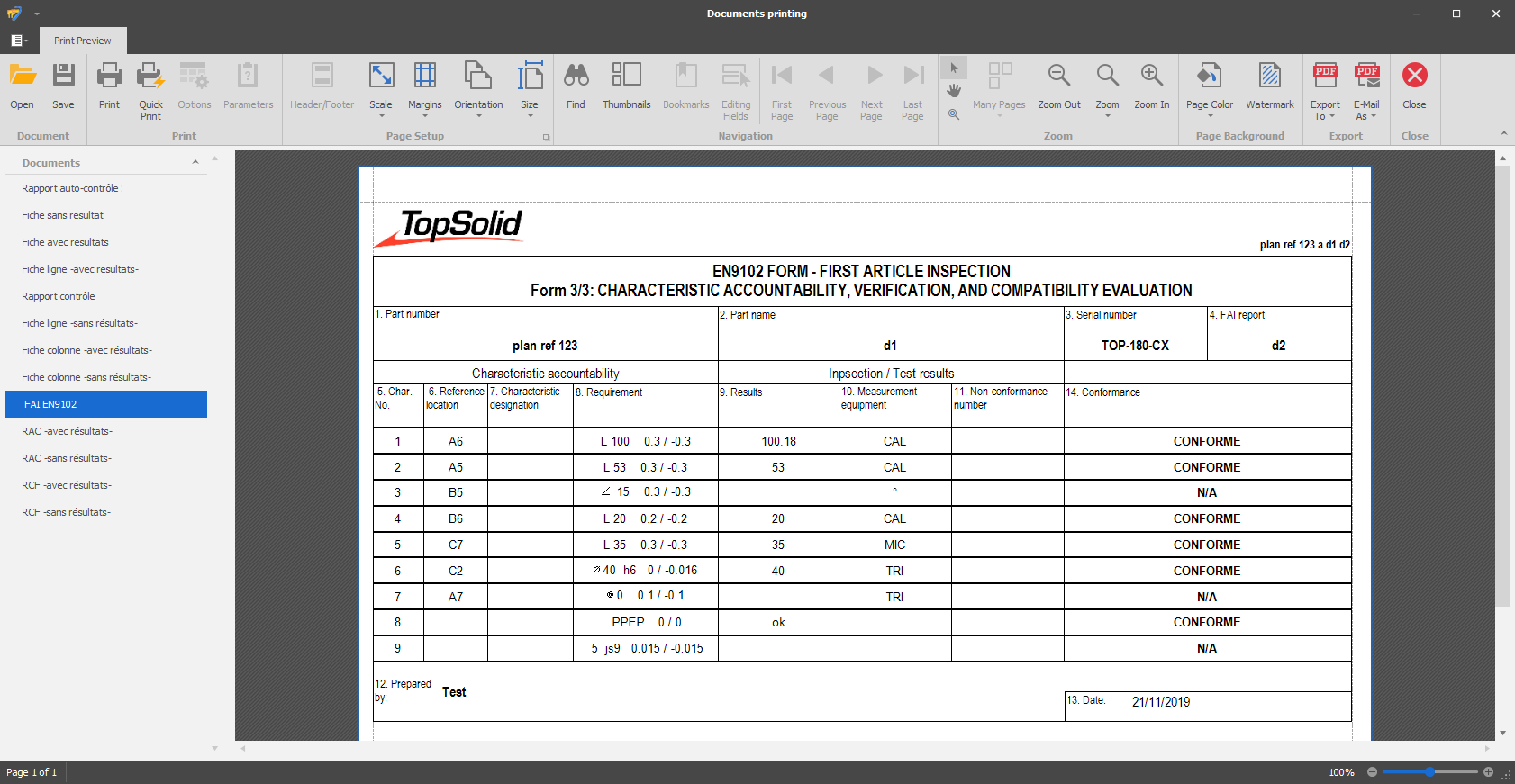 TopSolid'Inspection is a software package that supports the quality department of production companies, notably allowing the creation of inspection reports.