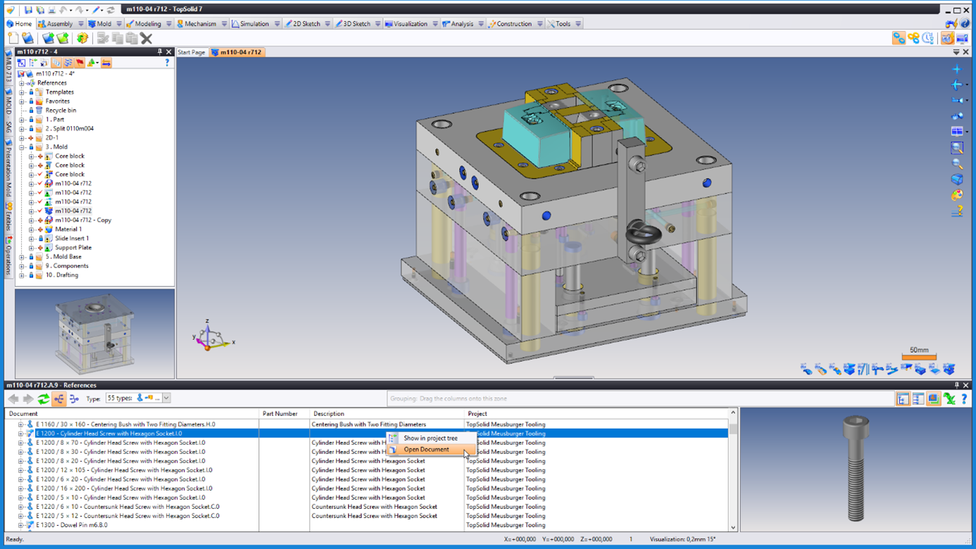 TopSolid'Mold is natively integrated with TopSolid'Pdm, providing a unique user experience.