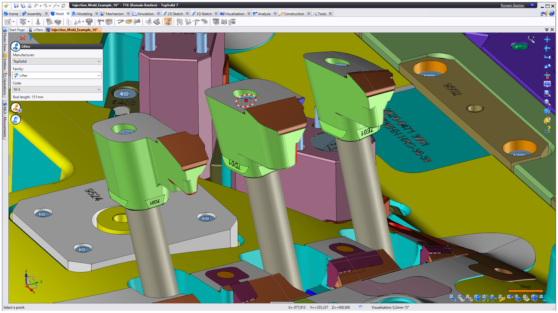 TopSolid'Mold provides specific kinematics features to animate and control Tooling movements.