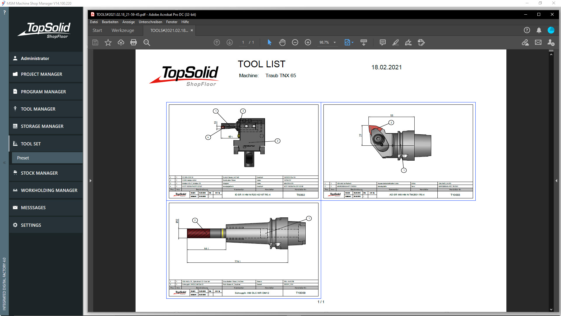 With the Tool Manager module, you can manage your tool components, assembled tools and other items involved in the manufacturing process.
